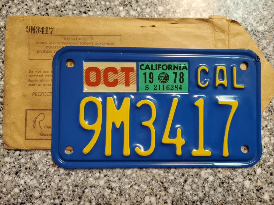 1978 California Motorcycle License Plate, DMV Clr